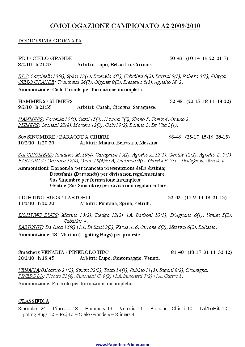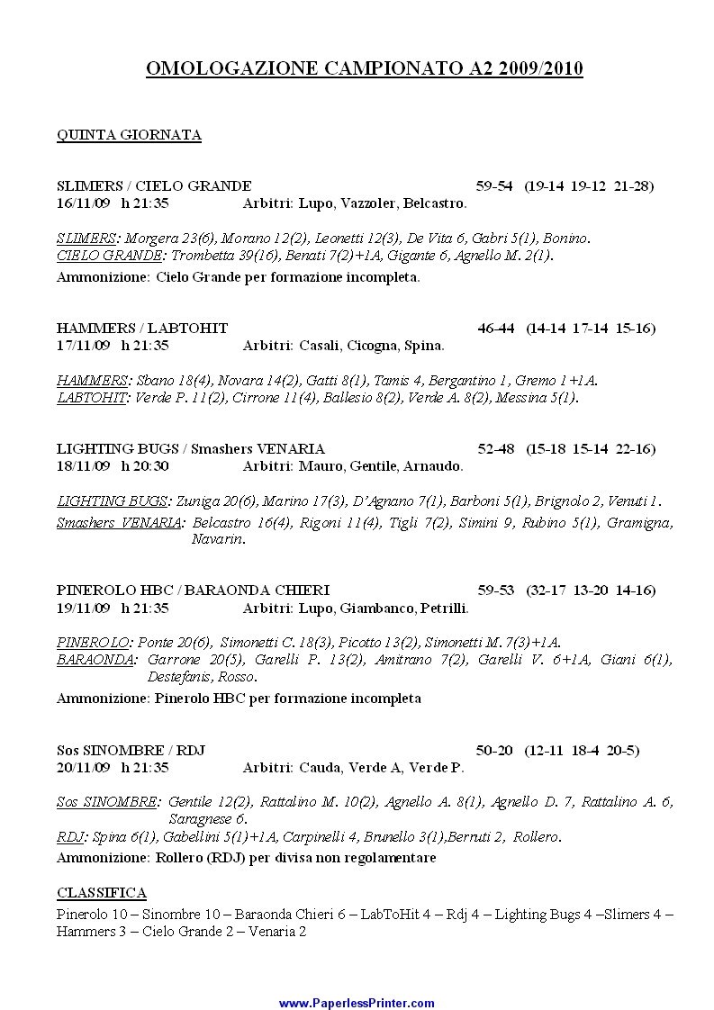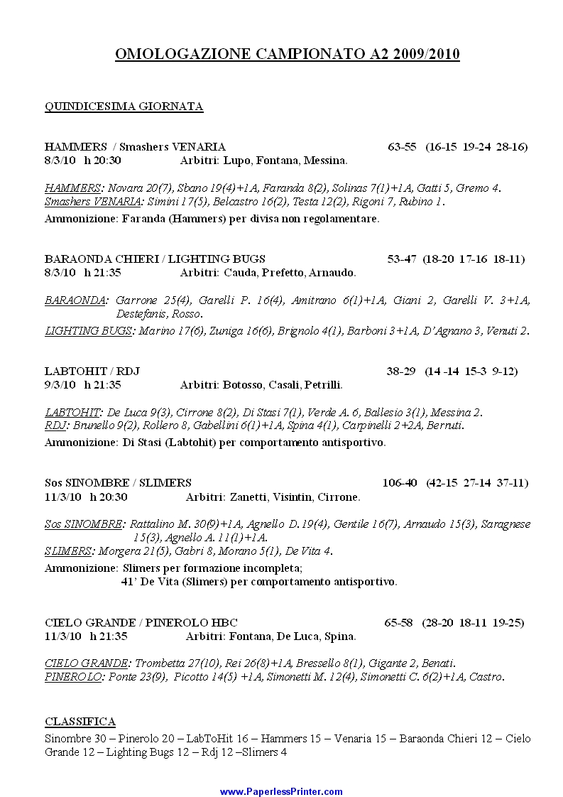 Risultati serie A2 (stagione 2009/10)