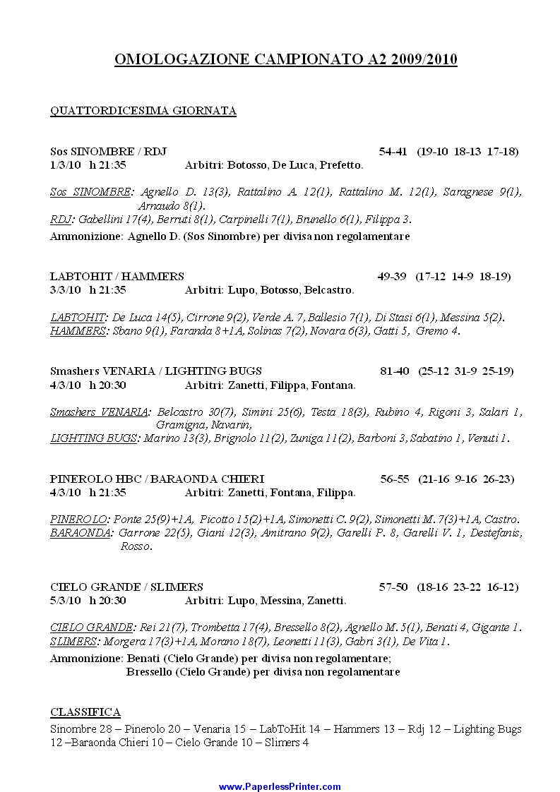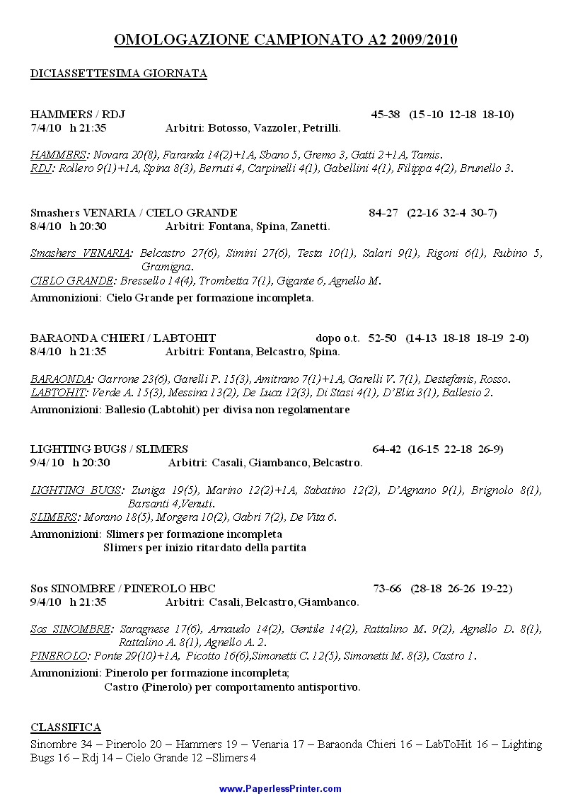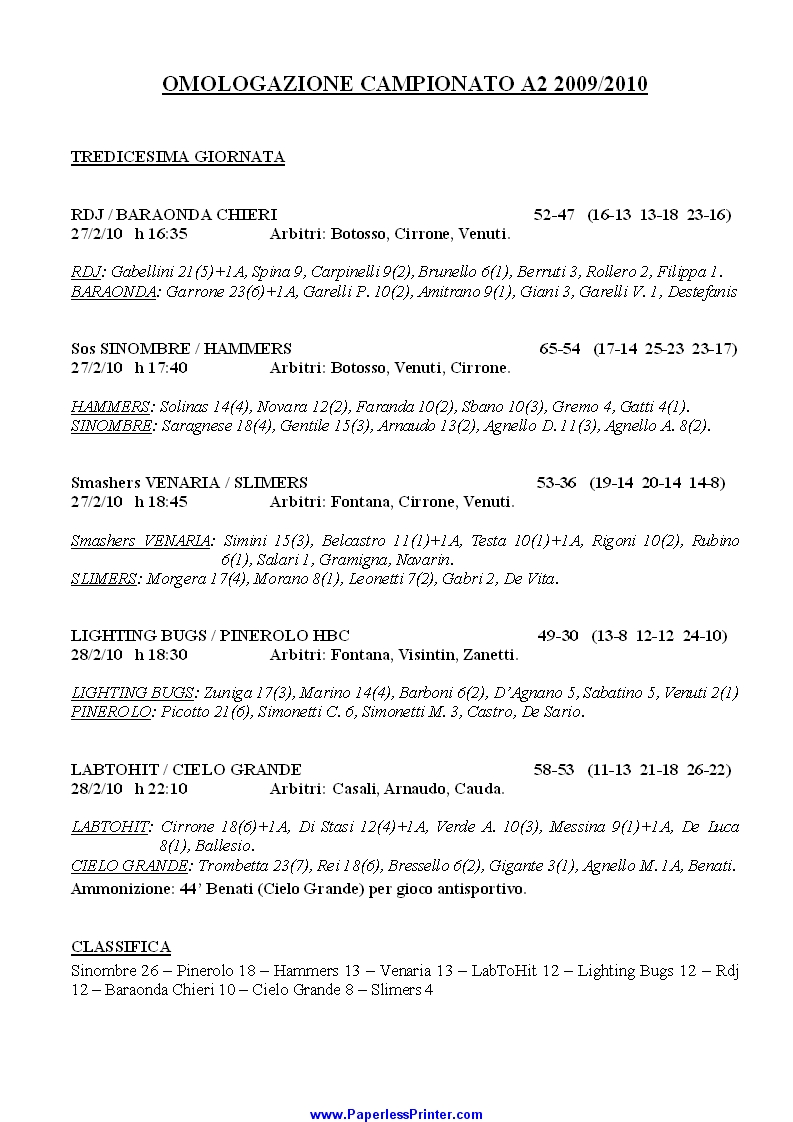 Pinerolo HBC - Baraonda Chieri : 62 - 51