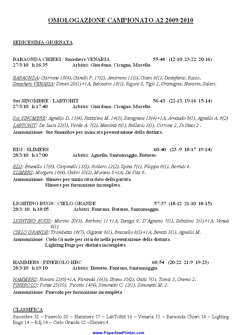 CLASSIFICA B2 DOPO REGULAR SEASON